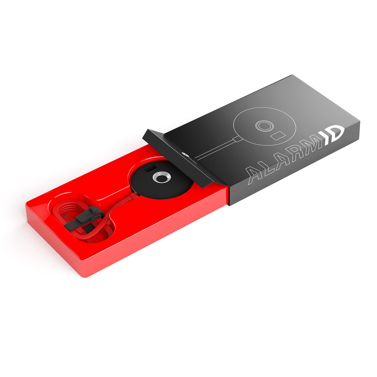 AlarmID with integrated Type C alarm cable and biometric fingerprint scanner.