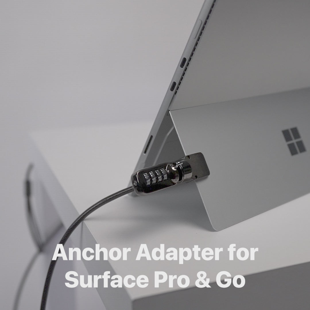 The Anchor Adapter for Surface Go and Pro 12 (and earlier) is a revolutionary lightweight security device that's specially designed to protect the Surface Go and Pro from theft by adding a lock slot. Combine the Anchor Adapter with our Laptop Cable Lock or any standard T-Bar or compatible Kensington cable lock for a full anti-theft solution.