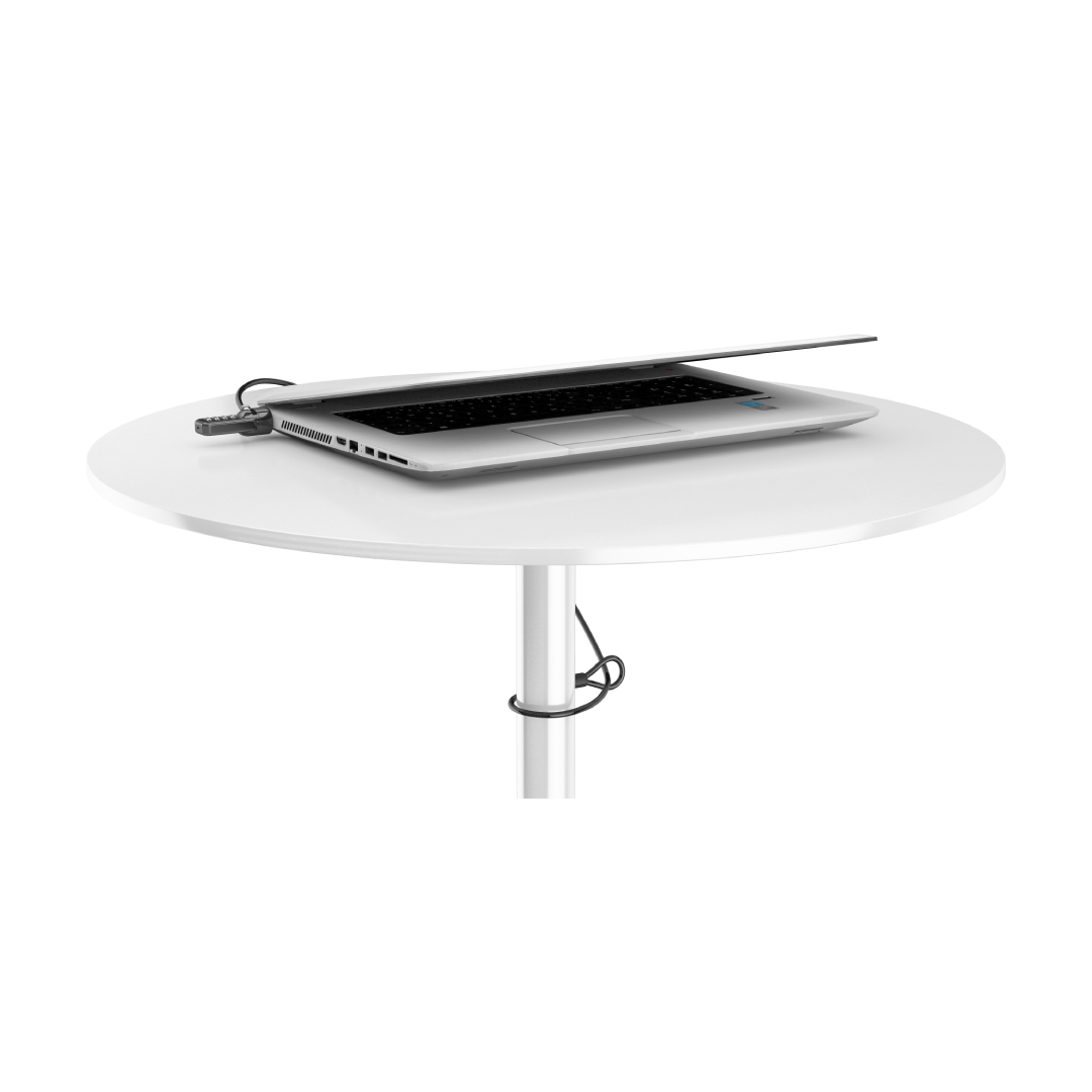 The lock attaches to the laptop's security slot (7mm x 3mm) using a T-Bar locking mechanism. For laptops with no lock slot, combine with our Anchor Adapter.